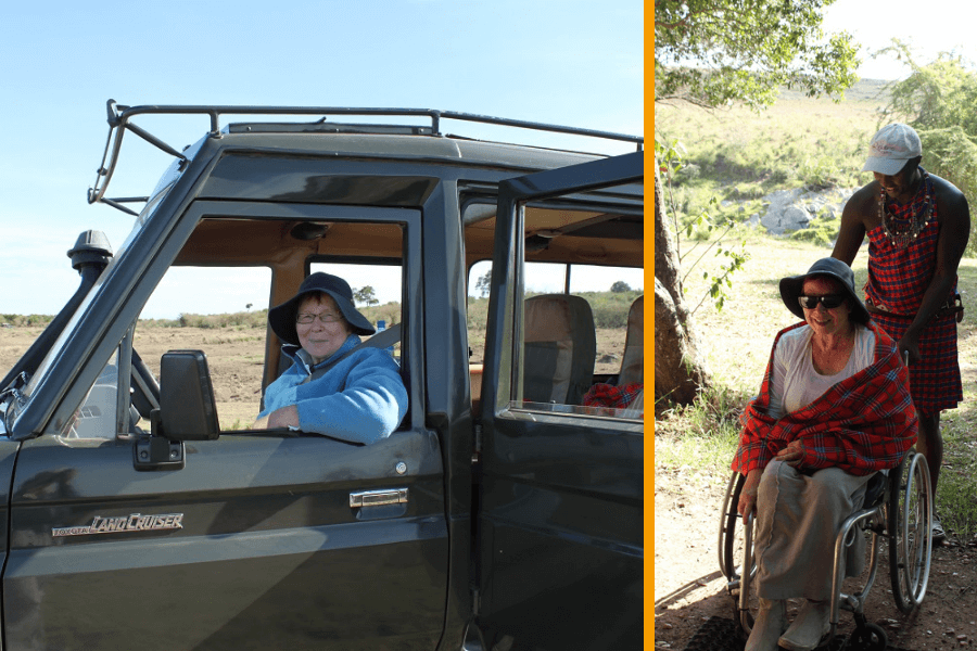 A thorough, detailed booking process got Tineke what she was hoping for. Her Kenyan safari opened in the Masai Mara where she stayed at two different tented camps and enjoyed game drives and local cultural tours, including a visit to a Maasai village. Tineke was happy with the front seat during her game drives but nowadays there are safari vehicles so well designed for wheelchairs that even the pop-up roof is accessible.
