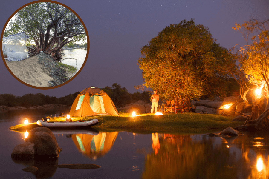 Lending its name to the Kafue National Park, the Kafue River feeds into the Zambezi and is a similar big-animal ecosystem. It’s a wild, relatively remote region and only recently accessible to canoe safaris, run from the comfort of KaingU Lodge in a private concession next to the park. Sitting back on a two-person inflatable canoe with your guide, you can enjoy canoe trails lasting from an hour to a full day – including options with a few easy rapids to run – but there are overnight adventures too. You’ll sleep on an island under the stars or in a dome tent after being resupplied by boat, delivering dinner, cold drinks and your pre-packed evening clothes.