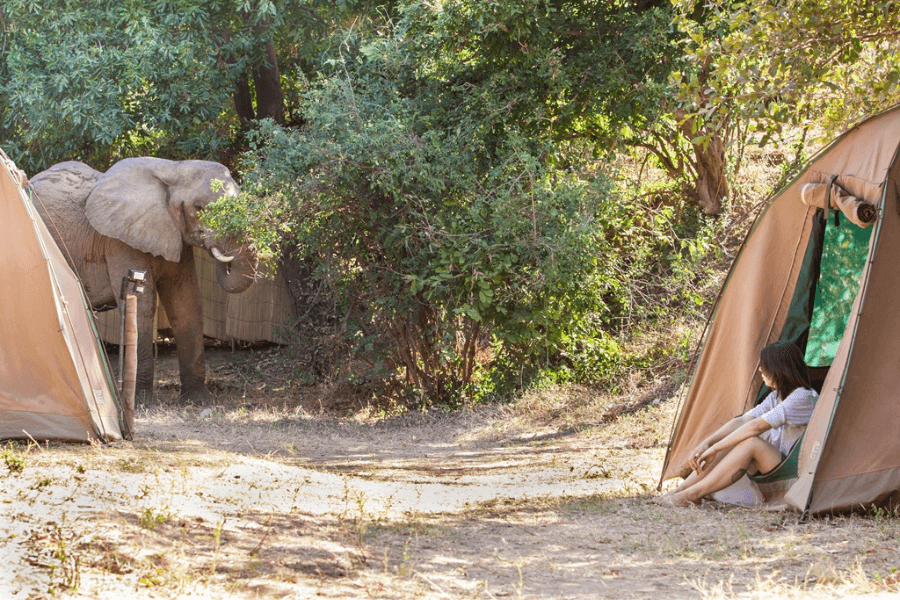 Full and half-day canoe safaris are available from both sides of the Lower Zambezi River: Zimbabwe’s Mana Pools and Zambia’s Lower Zambezi National Park. Both are classic big game country – elephants, lions, hippo and big herds of buffalo – and you’ll explore via game drives, guided walks and boat trips as well as canoe safaris and it’s easy to combine with Victoria Falls. We like Tembo Plains Camp in Mana Pools where each tent comes with a professional-quality DSLR camera with lenses plus a pair of high quality binoculars.