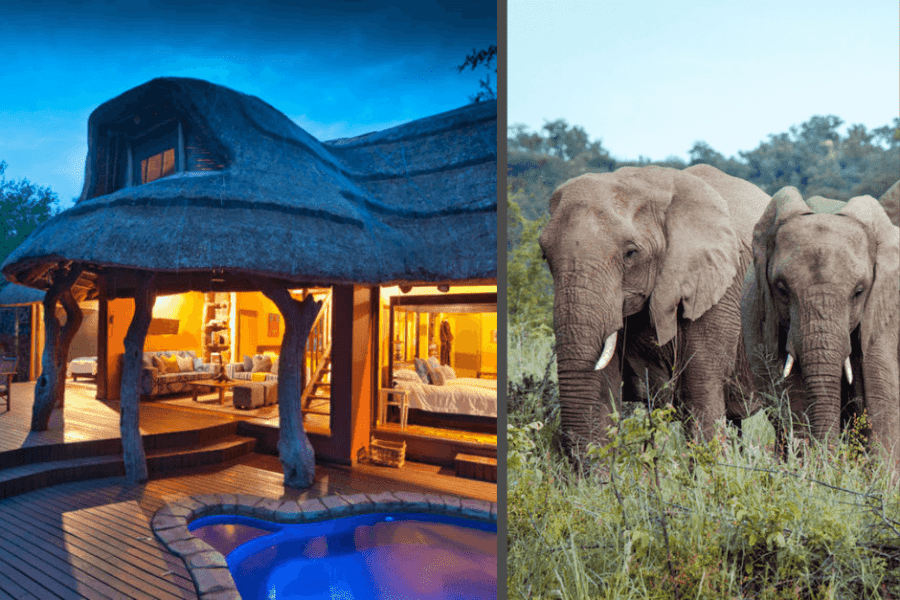 There’s air-conditioned accommodation for all types of traveller at Black Rhino Lodge in the private reserve – it’s a classic safari lodge overlooking a busy waterhole – but families with older children and couples could try Lush Private Lodge.