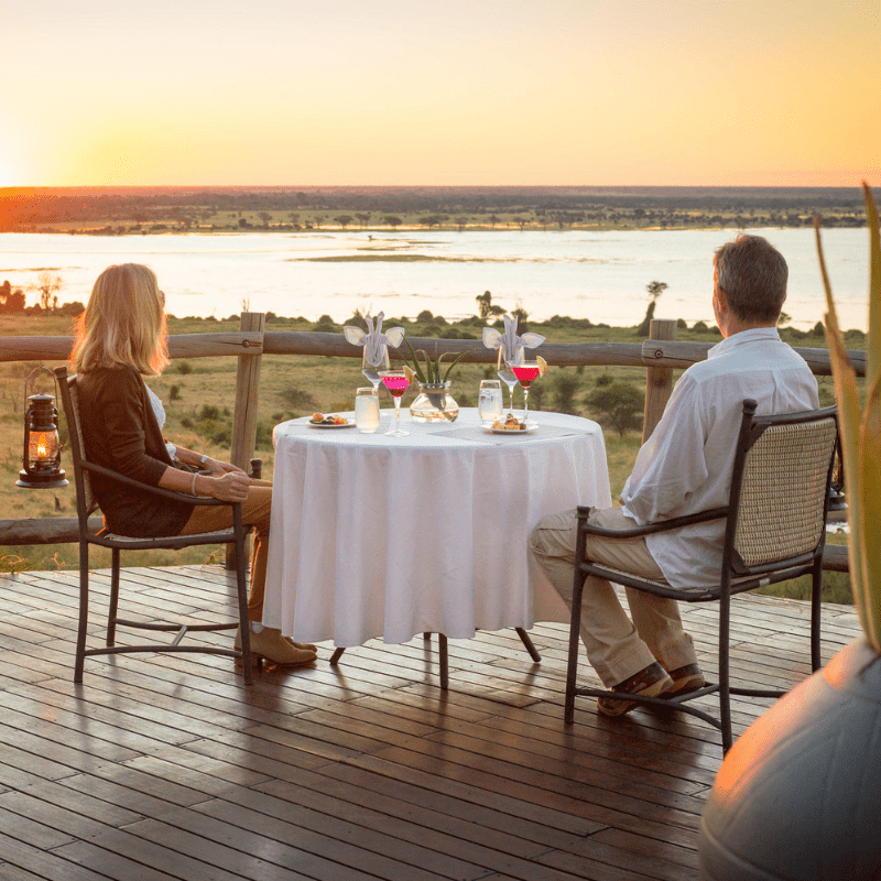 Luxury lodge perched on a plateau in Botswana’s Chobe Forest Reserve, offering sweeping views over the wildlife-rich Chobe River floodplains. Situated near the quieter western edge of Chobe National Park, the lodge provides a tranquil alternative to the busier eastern regions, while still granting easy access to the park’s abundant wildlife.