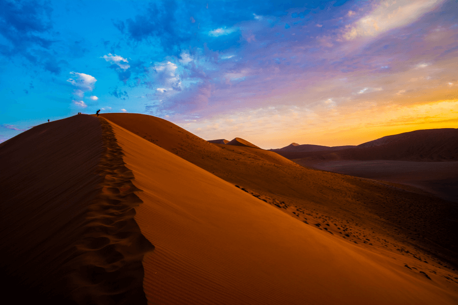 And that’s why African landscapes blow us away. We can see the scale of the sand dunes at Sossusvlei, we can appreciate the depth and desolation of the desert in which they lie. Our eyes pick up the subtle changes of colour as sunrise illuminates the dunes, turning them from cold purple to glowing orange. Africa is a chance to lift your eyes from the tyranny of the small screen and let them wander over horizons and into the cosmos. Let your eyes scan the tall grass, looking for the tell-tale signs of hiding lions: black-tipped ears and yellow eyes, let them drift among the stars of the Milky Way on a dark night, picking out constellations and planets.