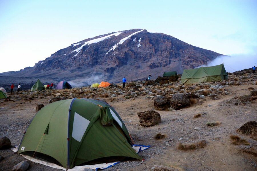Generally the hiking experience on Mount Kenya and Kilimanjaro is similar: lots of slow uphill walking through ever-changing habitats. The views are sensational on both mountains but temperatures get colder and the air thins as the hikes gain altitude. You’ll be camping – sleeping in a tent – though both Mount Kenya and Kilimanjaro have a trail option that offers hut accommodation. Tents and mattresses are provided along with all your food, drinks and camp amenities which usually includes a portable toilet.