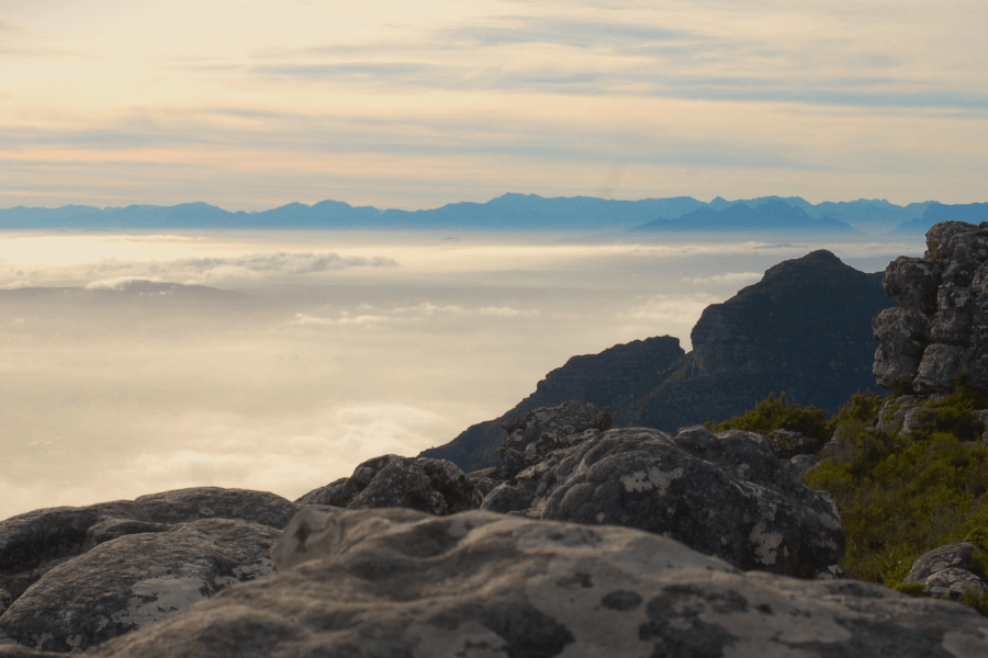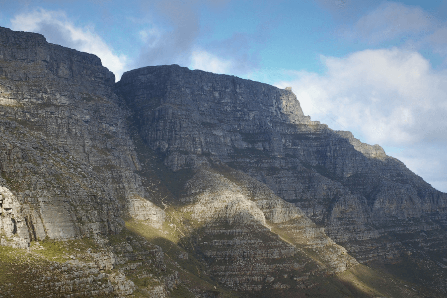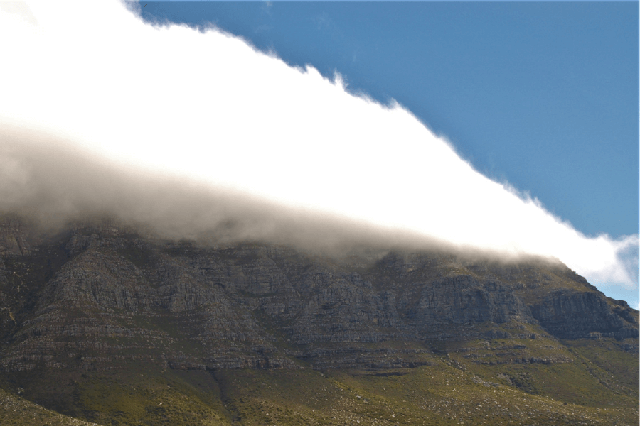 I’ll discuss both options in a moment but I’d better start with this: Table Mountain is covered in cloud for an average of 182 days a year. Yes, your maths is right: that’s half the year. Often, the clouds are created by strong ocean winds and collect on the mountain to form its famous ‘Table Cloth’ – a windy, soggy nuisance for hikers and sightseers but a fundamental cog in the local ecology. Most problematic for us is that these strong winds force the cable car to close, and it’s most common in summer.
