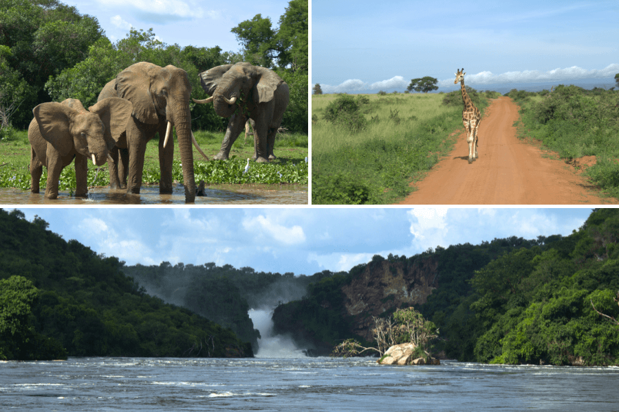 A Murchison Falls Montage – we explored by vehicle & river boat for a comprehensive wildlife safari.