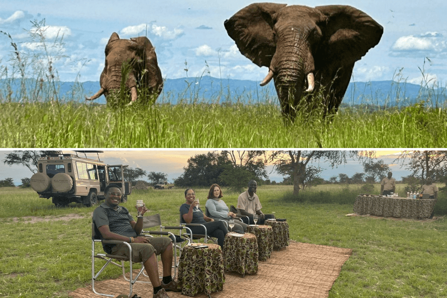 From Bwindi, we drove for about three hours to the Queen Elizabeth National Park where our arrival in the park was welcomed by a leopard lounging in a fig tree—a thrilling introduction to the area. As well as a boat cruise on the park’s famous Kazinga Channel, we enjoyed bush breakfasts, game drives and sundowners as well as drama: we watched as a hyena chased down and caught an antelope—raw, unscripted nature playing out before our eyes.